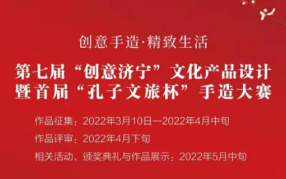 為深入發(fā)掘濟(jì)寧文化旅游資源的豐富內(nèi)涵、時(shí)代價(jià)值和獨(dú)特魅力,培育壯大本土傳統(tǒng)手工藝企業(yè),打造濟(jì)寧手造重點(diǎn)產(chǎn)業(yè)和高品質(zhì)產(chǎn)品,推動(dòng)“山東手造·濟(jì)寧好禮”工程實(shí)施,現(xiàn)就舉行第七屆“創(chuàng)意濟(jì)寧”文化產(chǎn)品設(shè)計(jì)暨首屆“孔子文旅杯”手造大賽作品征集如下。
