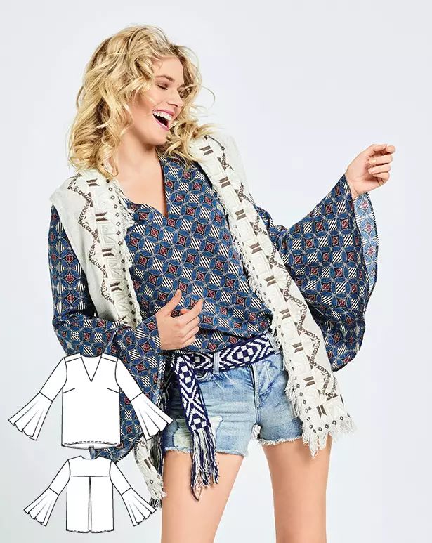 這種干凈的風格,有帶狀的衣領,背褶和袖套,被廣泛的裝飾在一個狂野的迷你星印上,被完美地配上一雙皮褲和德比靴。