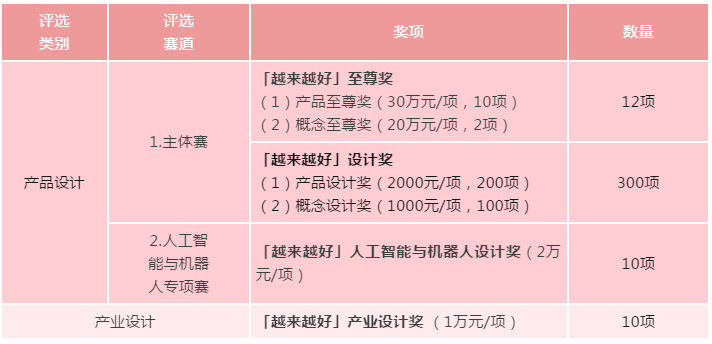 「越來越好」國際設計大賽設置產品設計和產業設計兩大類別。產品設計分設主體賽和專項賽。
