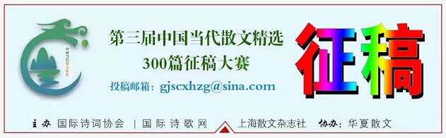 投稿郵箱:gjscxhzg@sina.com (歡迎通過電子郵件投稿,請(qǐng)不要重復(fù)投稿,多投無效,標(biāo)題注明作者姓名+作品名稱,投稿電子投稿后,請(qǐng)不要再寄來紙稿。投稿請(qǐng)注明詳細(xì)聯(lián)系地址、郵編、電話,微信號(hào)、投稿后請(qǐng)關(guān)注國(guó)際詩(shī)歌網(wǎng)公眾號(hào):bhsx272580736和國(guó)際詩(shī)歌網(wǎng):www.gjsgshxh.com 每天將發(fā)表部分入圍作品)。