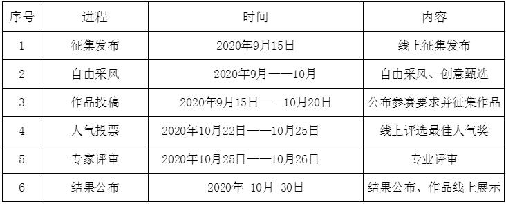 六大階段:征集發布、自由采風、作品投稿、人氣投票、專家評審、結果公布